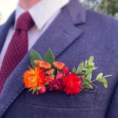 Flower pin to coordinate with bouquets, complement suits and other wedding elements. Natural stems tied with ribbon.